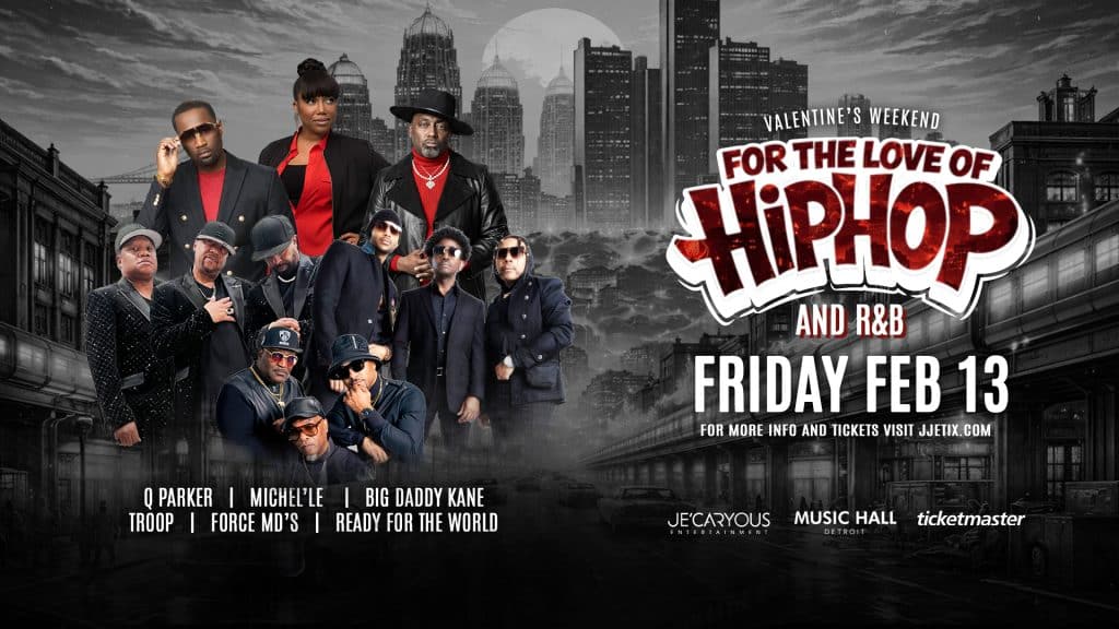 For the Love of Hip Hop and R&B lands in Detroit Valentine’s Weekend for one unforgettable night celebrating love, legacy, hip-hop and R&B culture. This special event brings together iconic voices, timeless hits, and legendary energy. Q Parker, Michel’le , Big Daddy Kane, Troop , Force MD’s and Ready For The World all on one stage.