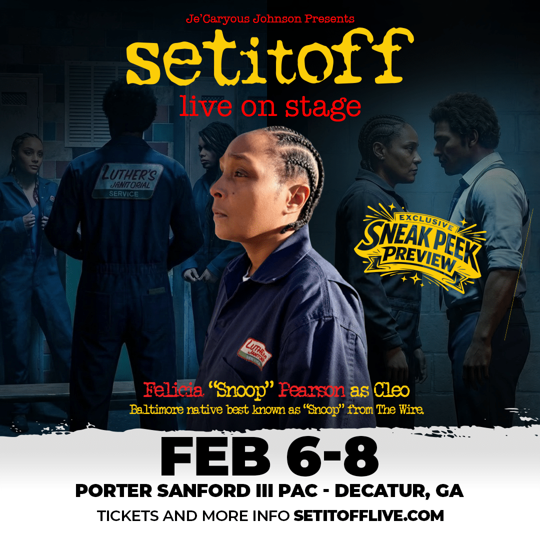 You asked for it — Set It Off Live is BACK! The cult-classic heist story you love is reimagined for the stage this Valentine’s Weekend. Starring Felicia Pearson as CLEO — the Baltimore native best known as “Snoop” from The Wire.